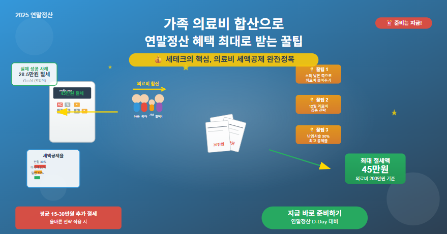 연말정산 시즌이 되면 많은 분들이 '의료비를 어떻게 정리하지?' 고민하시죠. 특히 가족이 많거나 맞벌이 부부라면 더욱 복잡해집니다. 하지만 몇 가지 핵심 원리만 알면 의료비 세액공제로 상당한 절세 효과를 볼 수 있어요.