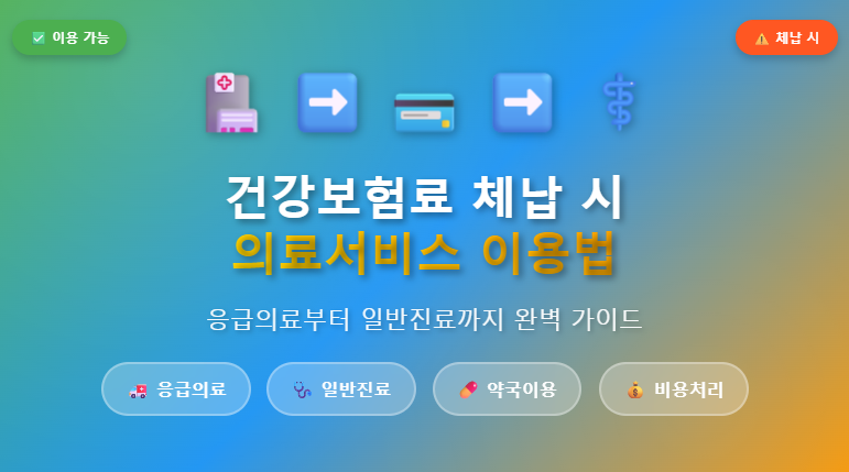 🚨 핵심 메시지: 건강보험료를 체납했어도 의료서비스 이용은 가능합니다. 다만 비용 부담과 절차를 미리 알고 대비해야 합니다.