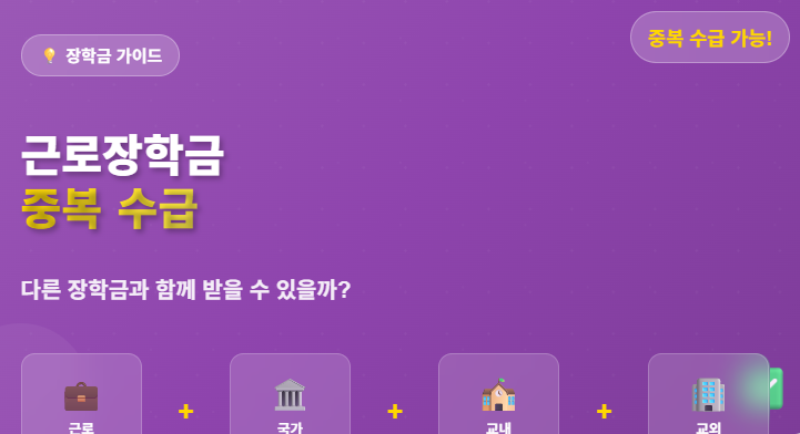 - 국가근로장학금: 교내/교외 근로 대가