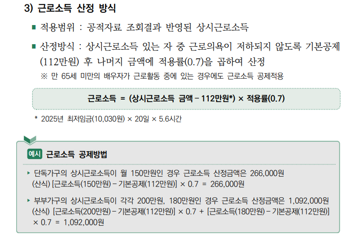 - 공제 적용 후, 실제 인정 소득을 기준으로 수급 여부 결정