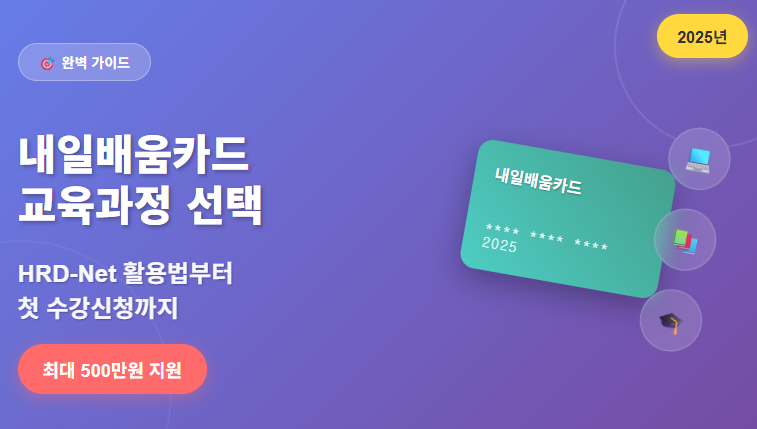 내일배움카드를 발급받았다면 이제 본격적인 교육과정 선택이 중요합니다. 2025년부터는 최대 500만원까지 지원되며, 597개 과정이 추가되어 더 다양한 선택지가 생겼습니다. HRD-Net을 통해 체계적으로 교육과정을 찾고 신청하는 방법을 단계별로 알아보겠습니다.