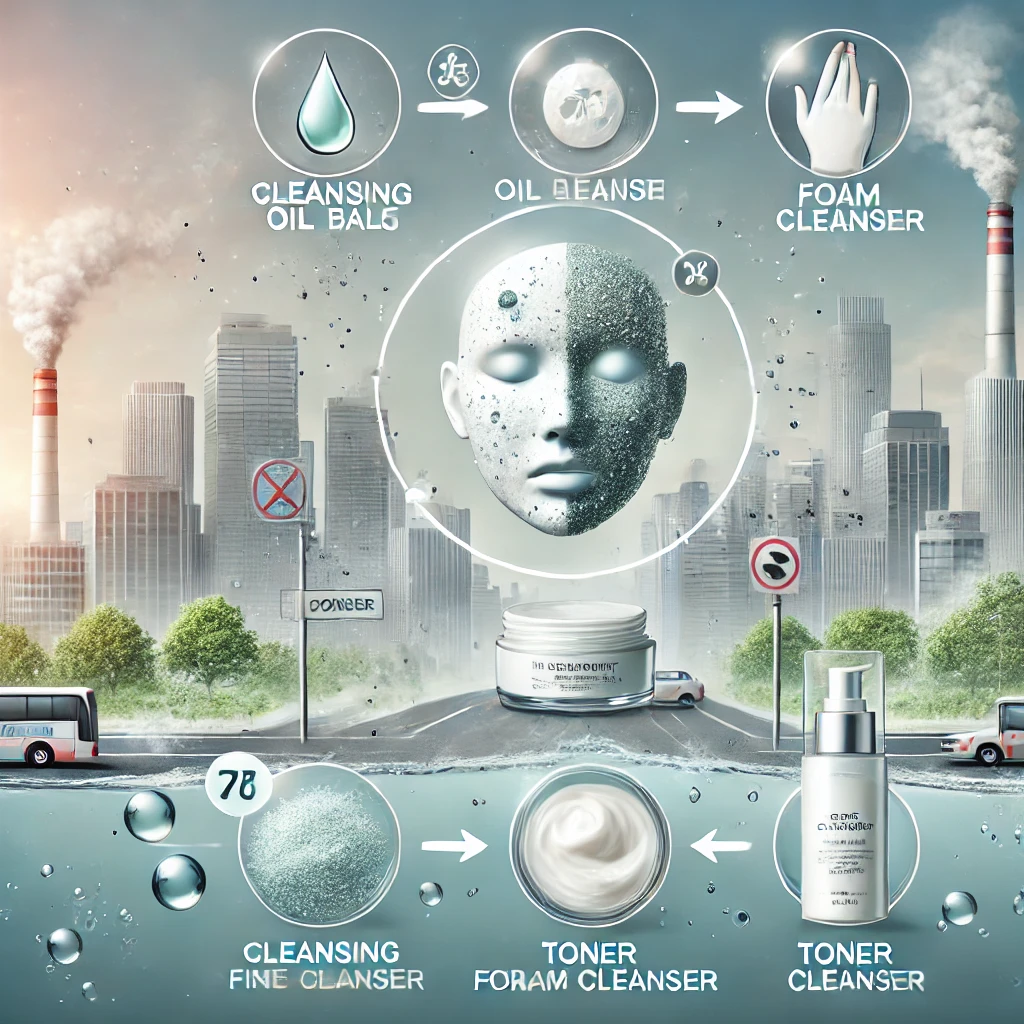 다음은 미세먼지를 효과적으로 제거하는 클렌징 루틴입니다.