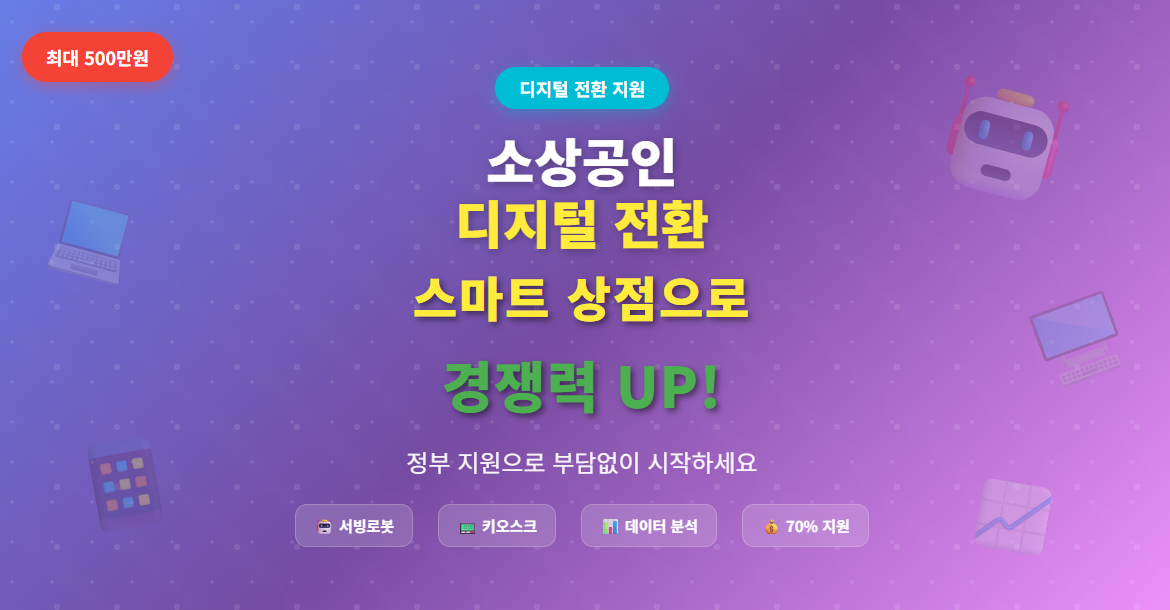 을 받을 수 있는 지금이 디지털 전환의 최적의 타이밍입니다. 더 이상 망설이지 말고, 오늘부터 우리 가게의 디지털 혁신을 시작해보세요.