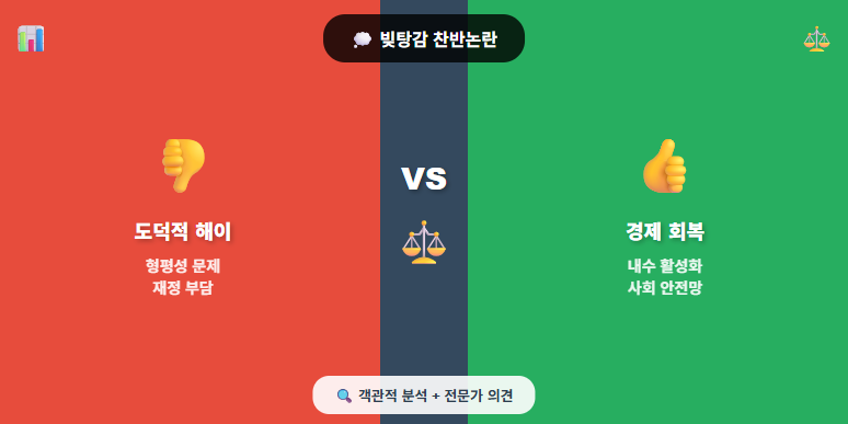 - 반대 이유: "형평성 문제", "도덕적 해이", "재정 부담"