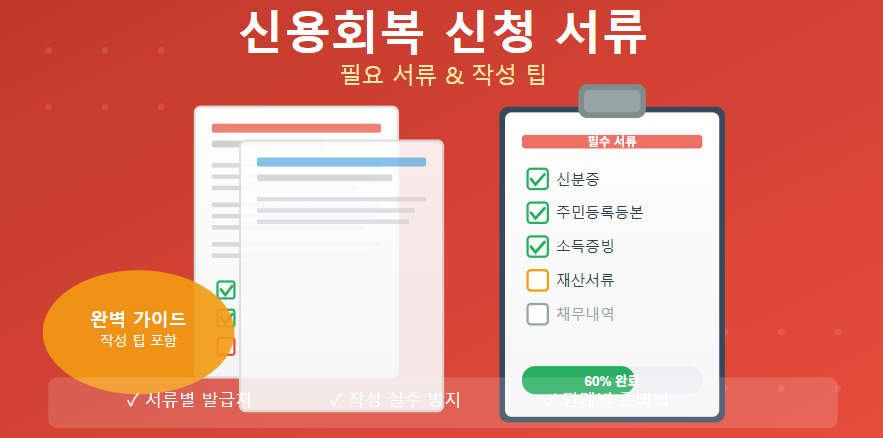 신용회복을 신청하려고 마음먹었지만, 어떤 서류가 필요한지, 어떻게 준비해야 하는지 막막하신가요? 서류 준비만 제대로 해도 신청 과정이 훨씬 수월해집니다. 이 글에서는 신용회복 신청 시 필요한 모든 서류와 작성 시 주의사항, 그리고 실제로 도움이 되는 실전 팁까지 상세히 알려드립니다.