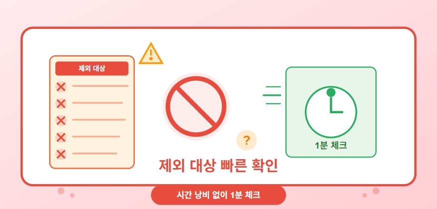 - 8가지 제외 항목 중 하나라도 해당되면 신청 불가