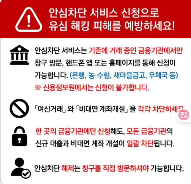 여신거래 안심차단 서비스로 나도 모르는 대출 사전에 차단해요! "신청방법 알려드림!" "어...