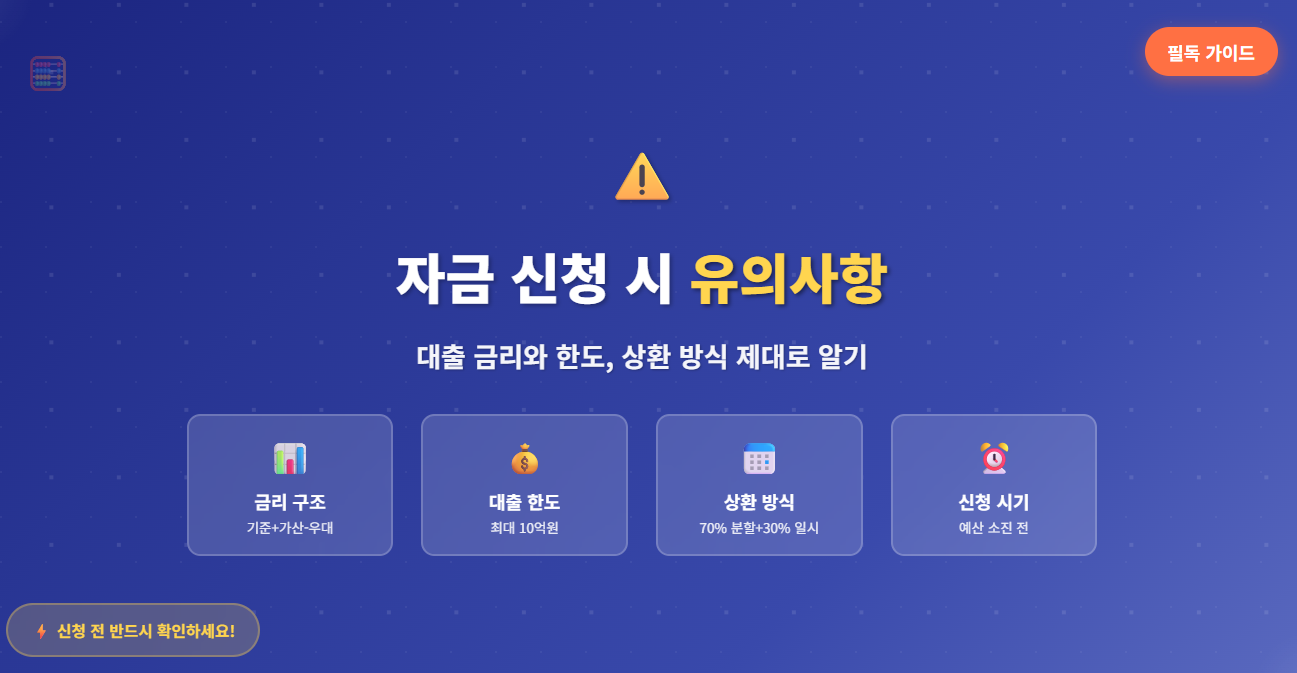 ⚠️ 중요한 점: 기준금리는 분기마다 변동됩니다. 신청할 때의 금리와 실제 대출 실행 시의 금리가 다를 수 있으니, 최신 금리를 반드시 확인하세요!