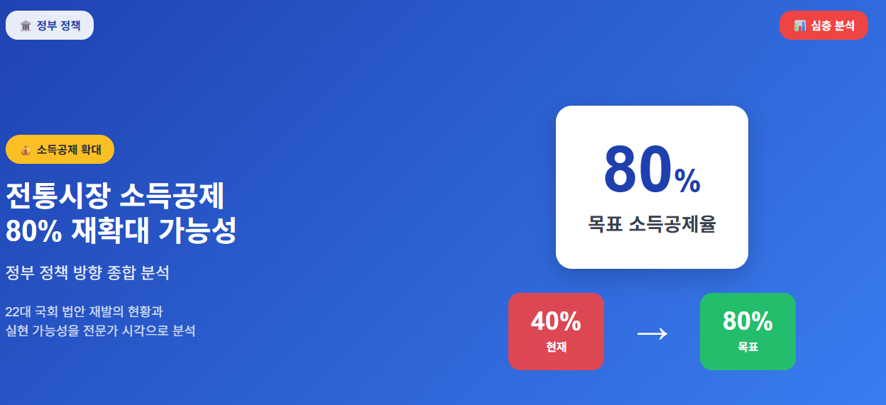 💡 정부가 전통시장 활성화를 위해 소득공제율을 현행 40%에서 80%로 확대하는 정책을 지속적으로 추진하고 있습니다. 최신 정책 동향과 실현 가능성을 종합 분석해보겠습니다.