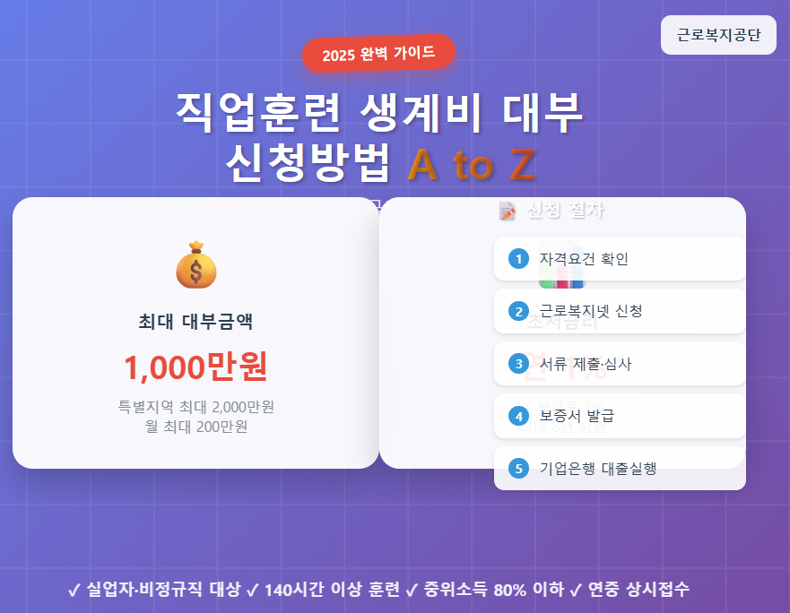 직업훈련 생계비 대부는 근로복지공단에서 제공하는 저리 융자 제도로, 직업훈련에 참여하는 취약계층에게 최대 1,000만원까지 연 1%의 저금리로 생계비를 지원합니다.