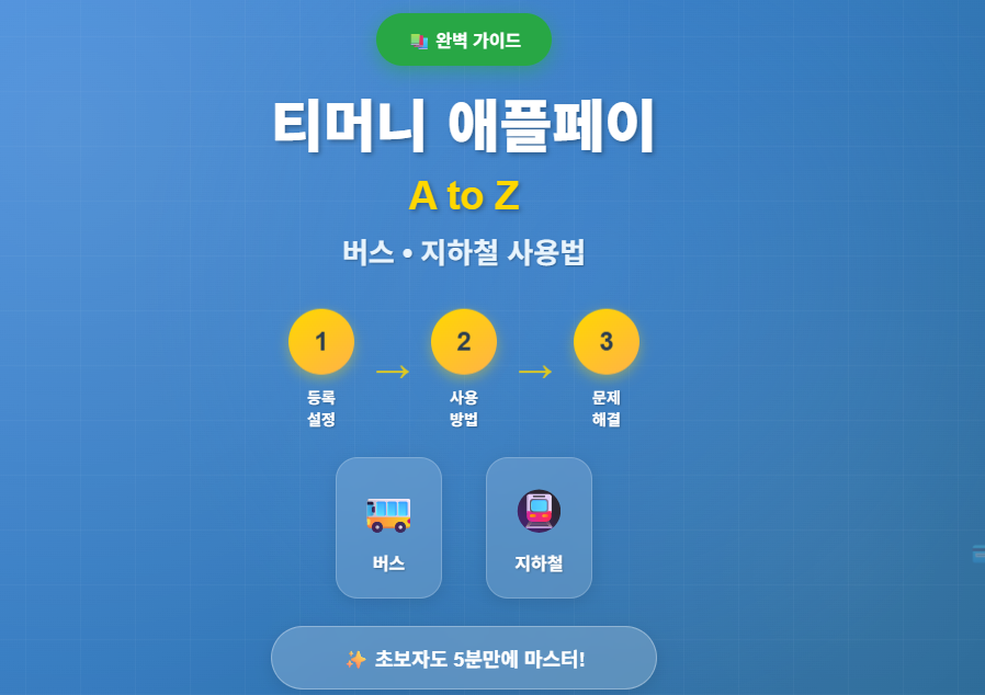🎯 드디어 출시된 티머니 애플페이, 제대로 활용하고 계신가요? 설정부터 실제 사용까지, 헷갈리기 쉬운 부분들을 한 번에 정리해드립니다. 이 가이드 하나면 티머니 애플페이의 모든 기능을 완벽하게 마스터할 수 있습니다!