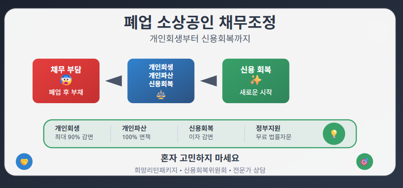 특히 폐업 소상공인의 경우 사업 실패로 인한 부채뿐만 아니라 개인 생활자금까지 영향을 받는 경우가 많아, 체계적인 채무조정이 더욱 중요합니다.