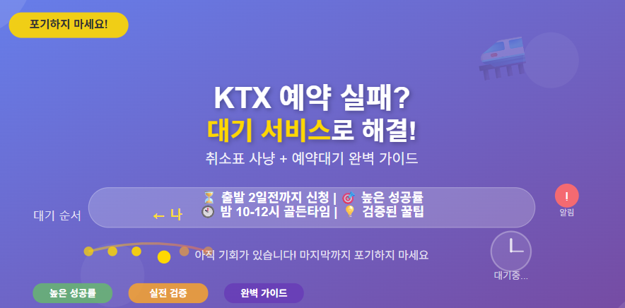 대기 서비스와 취소표 사냥으로 마지막까지 승차권을 확보하세요