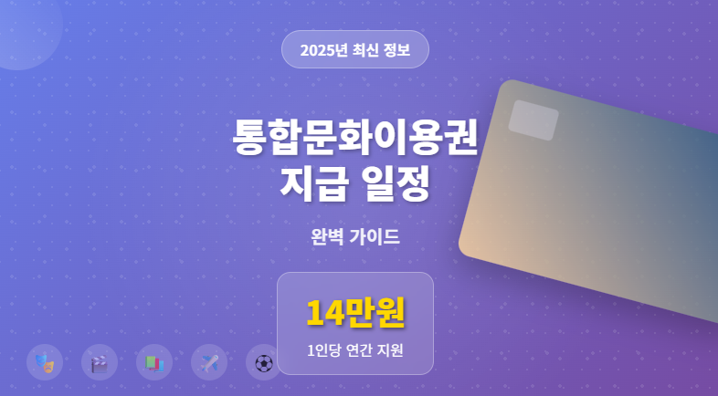 2025년 통합문화이용권(문화누리카드) 지급 일정이 궁금하신가요? 기초생활수급자와 차상위계층을 위한 문화복지 혜택인 문화누리카드의 올해 지급 일정과 신청 방법을 상세히 알려드립니다. 2025년에는 1인당 연간 14만원이 지원되어 작년보다 1만원 증액되었습니다.