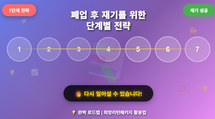 폐업은 끝이 아니라 새로운 시작의 기회입니다! 체계적인 7단계 전략으로 더 강하게 재기할 수 있어요!