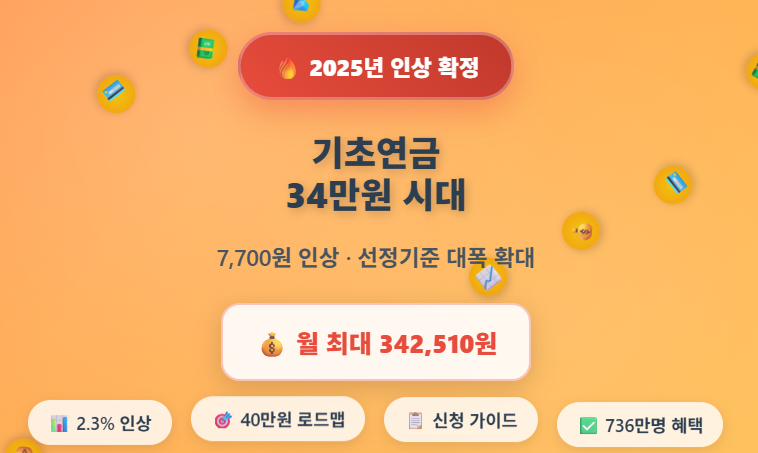 2025년부터는 선정기준액이 대폭 인상되어 더 많은 어르신이 기초연금 혜택을 받을 수 있게 되었습니다.