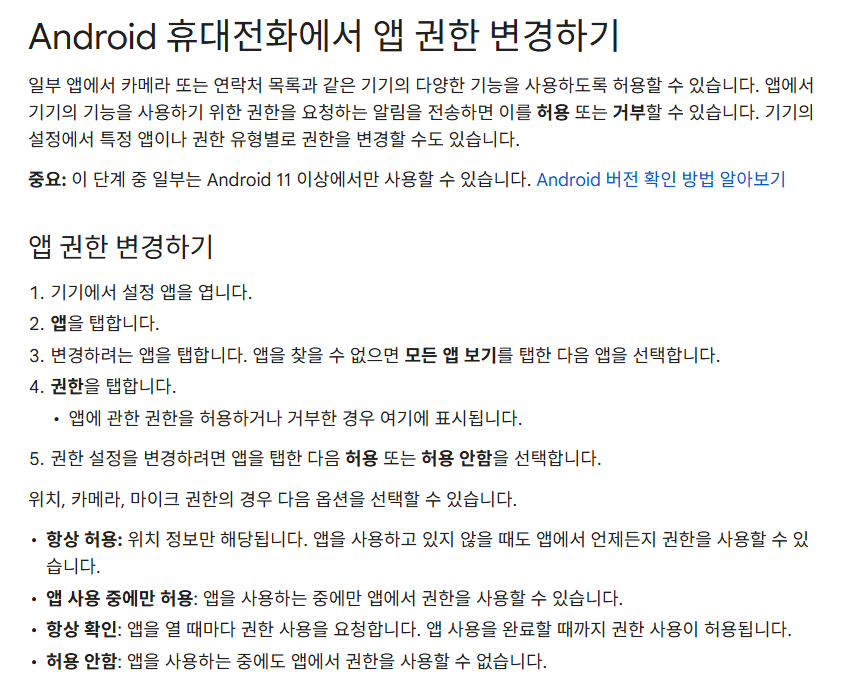 - 앱 권한 관리: 불필요한 권한은 비활성화하여 개인정보 유출을 방지합니다.