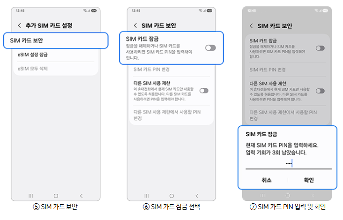 - Android: 설정 > 보안 > SIM 카드 잠금