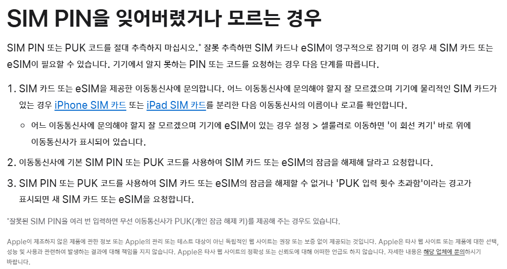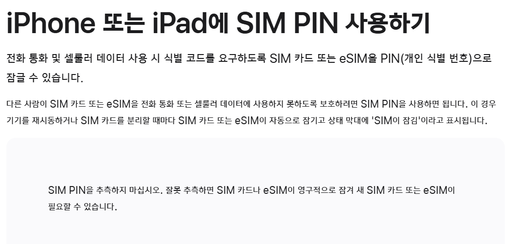 - iPhone: 설정 > 셀룰러 > SIM PIN